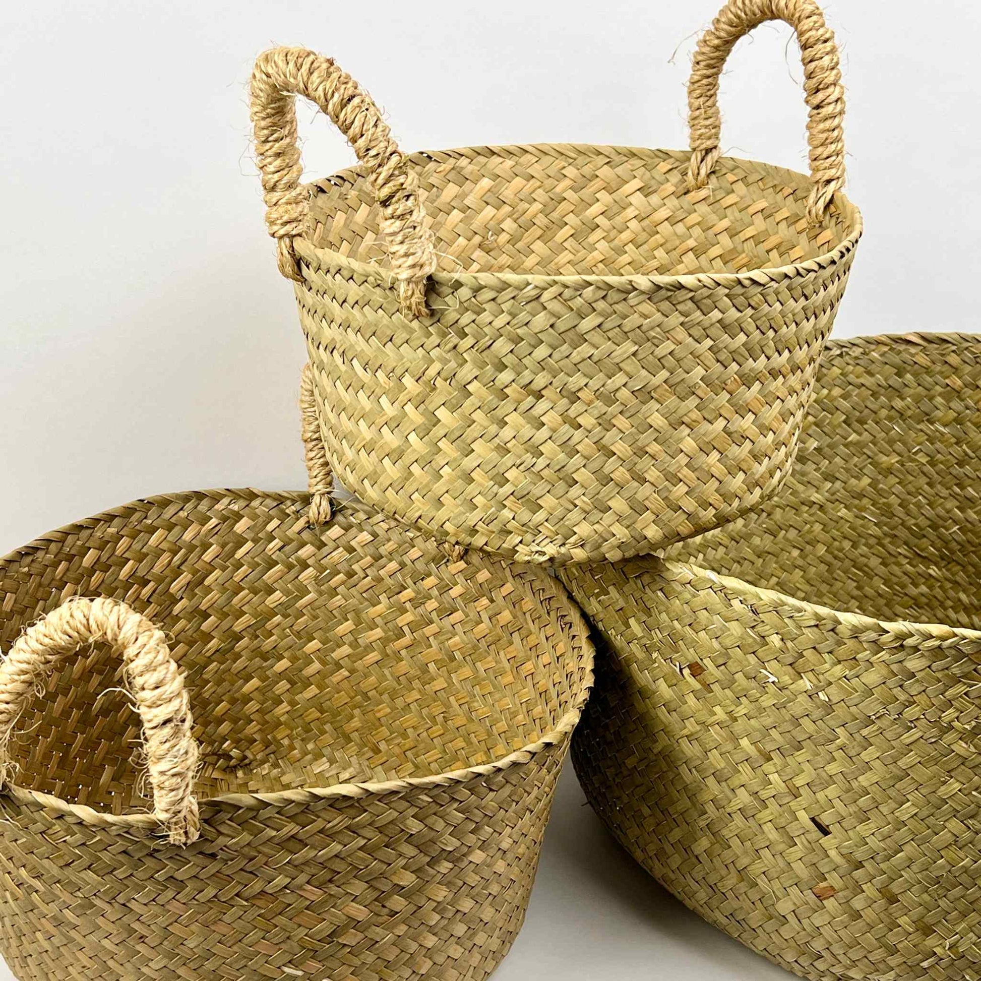 Verabschieden Sie sich von Unordnung und setzen Sie mit dem Aufbewahrungskorb-Set „Carlo“ auf stilvolle Natürlichkeit. Exklusiv bei Jil Sevens Interiors erhältlich.