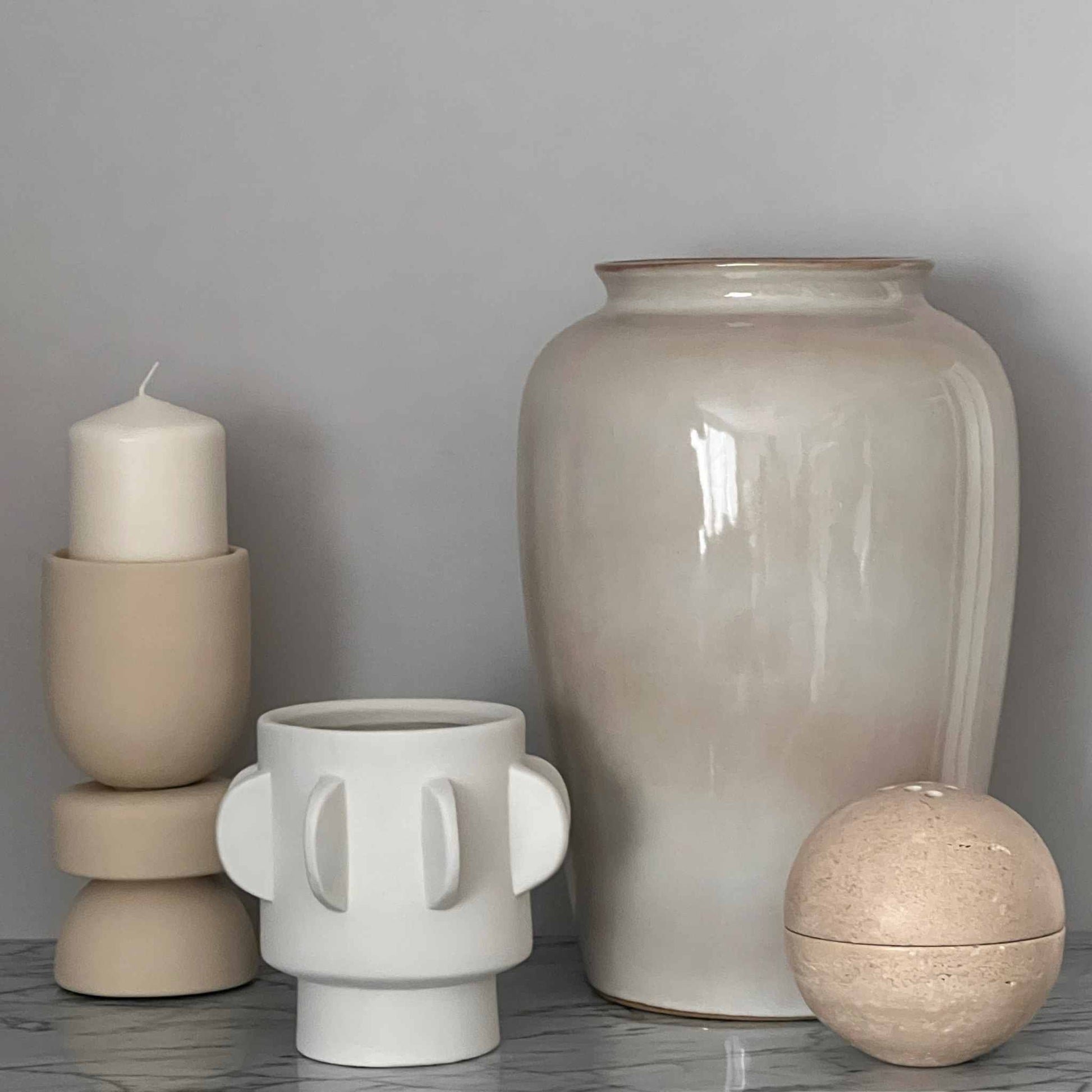 Die "Gaia" Vase ist ein Meisterwerk moderner Designkunst. Ihr minimalistischer Stil in makelloser, warmer, weißer Farbe machen sie zu einem Statement-Stück, das in jedem Raum glänzt.